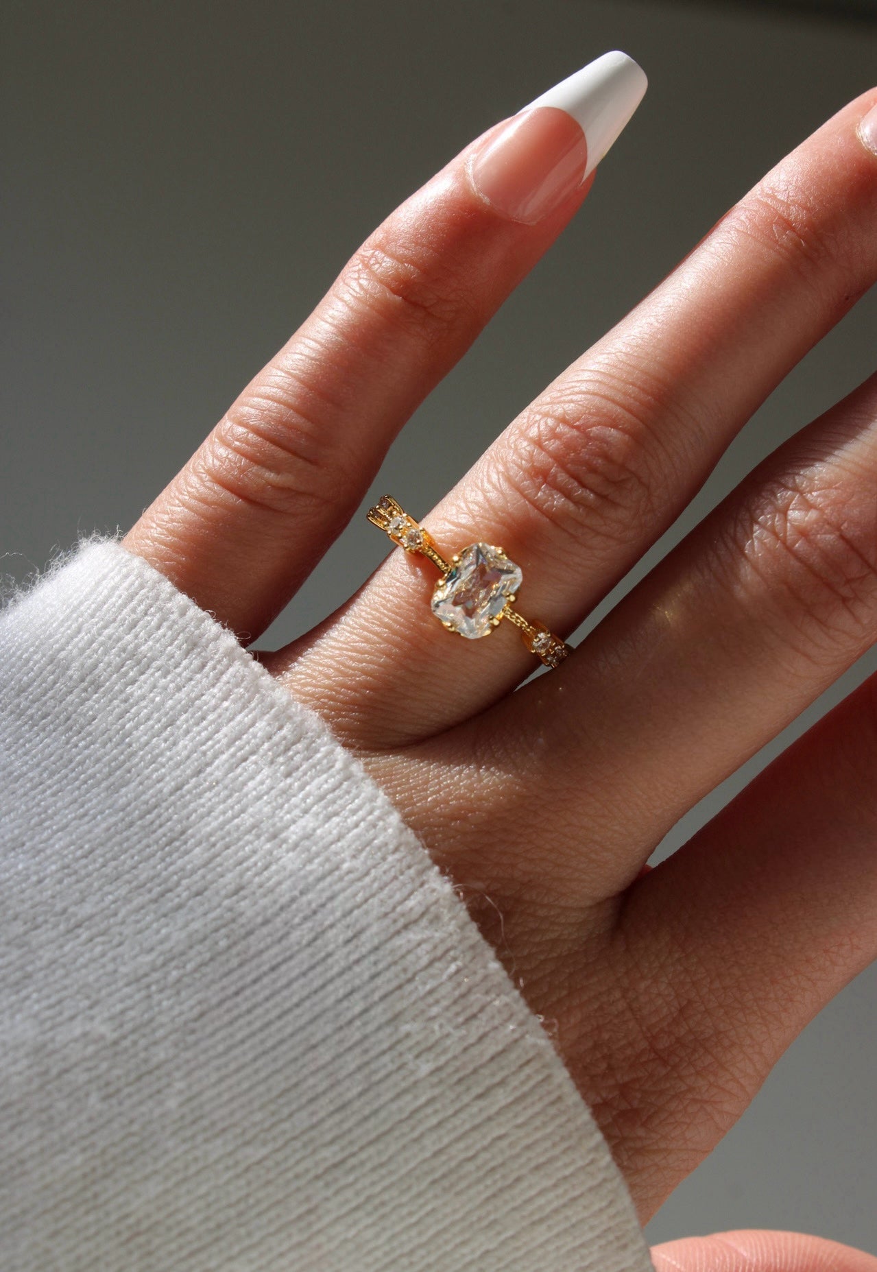 Gold Emerald Cut Clear Stone Ring